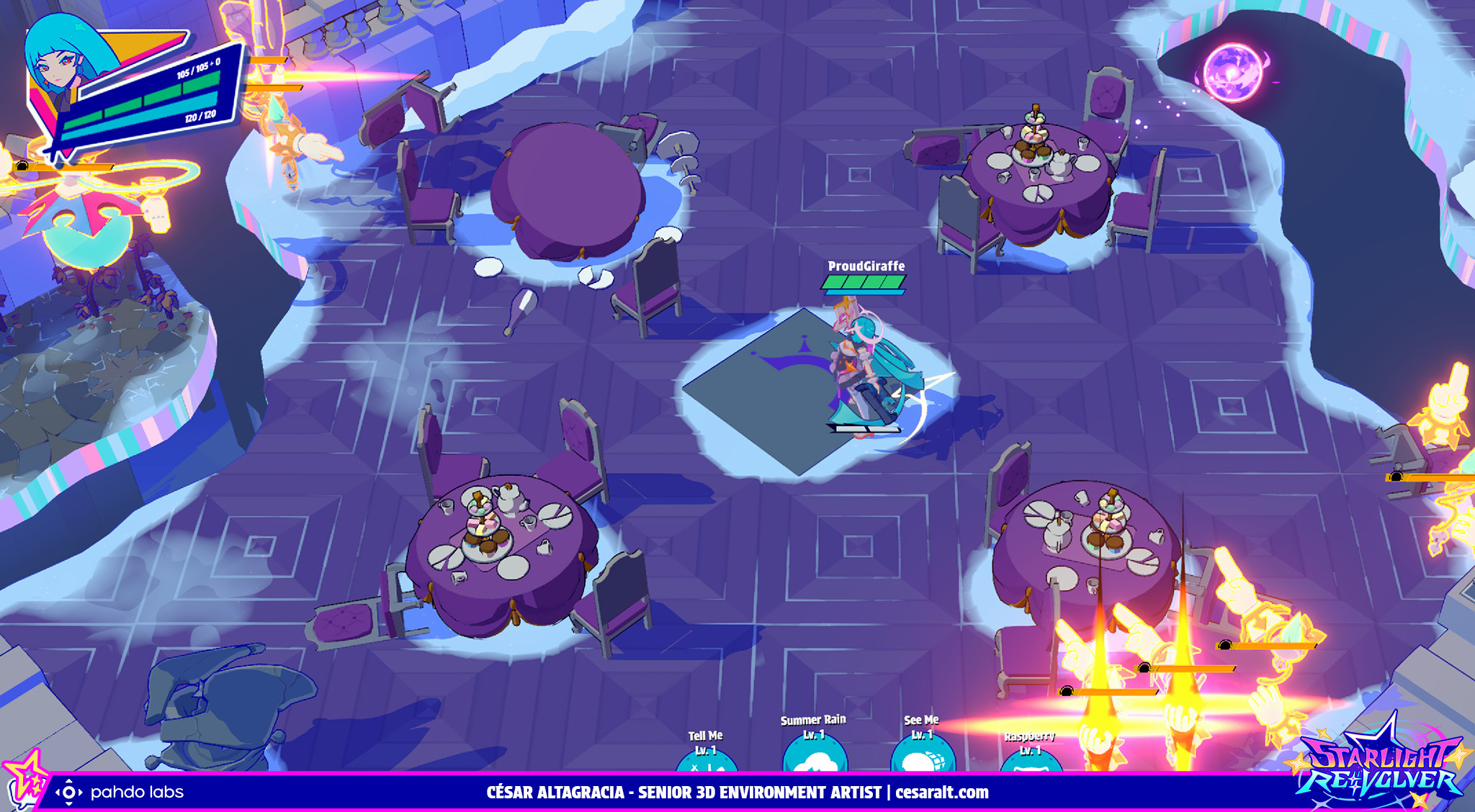 Starlight Re:Volver is an incredibly fun 1-4 player action RPG. inspired by anime, magical girls, and nostalgic co-op games with social hubs. As a Senior 3D Artist I helped model, texture and set dress several combat areas in the digital realm called "SoMi".